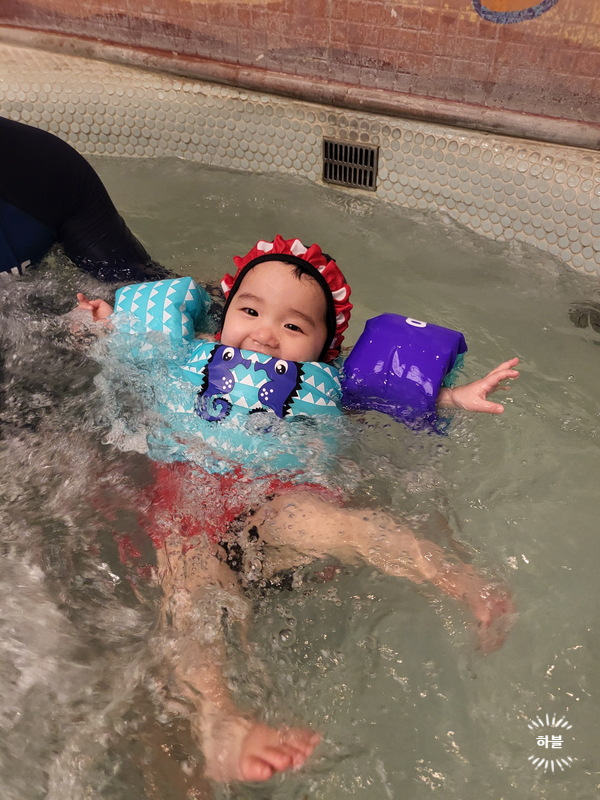 그래도 돌 아기에게는 실내수영장도 좋은 물놀이 공간이었고 잘 놀았습니다~
