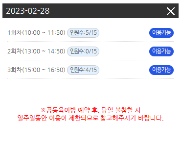 시간대가 짧아 많은 사람들이 이용하지 못하는게 아쉬운 것 같아요~